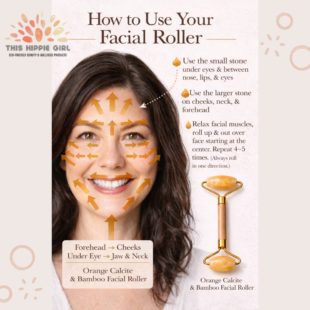 Orange Calcite Facial Roller – Bamboo...